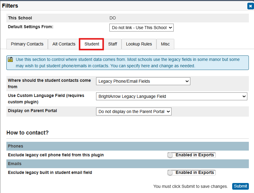 - In the "Student" tab you can set the "How to Contact" filters as well as specifying some other filter options.