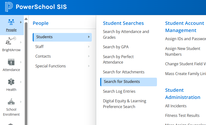 - In PowerSchool, navigate to People > Students and select the group of students you wish to email