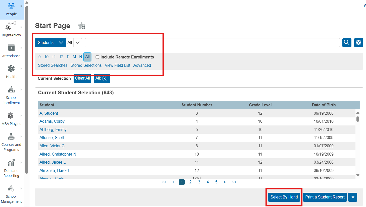 - You can use the filters to select a group of students, or select them by hand
