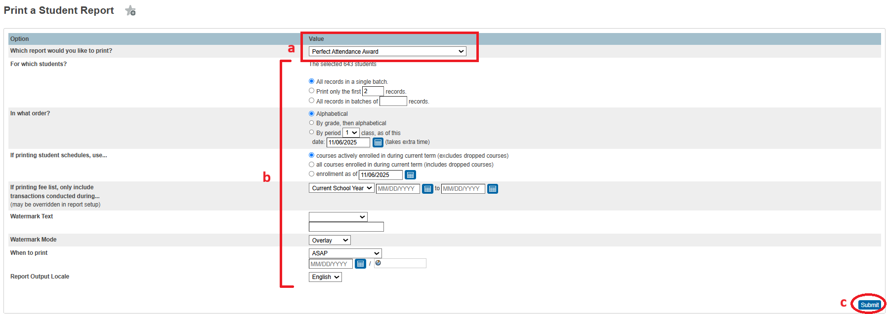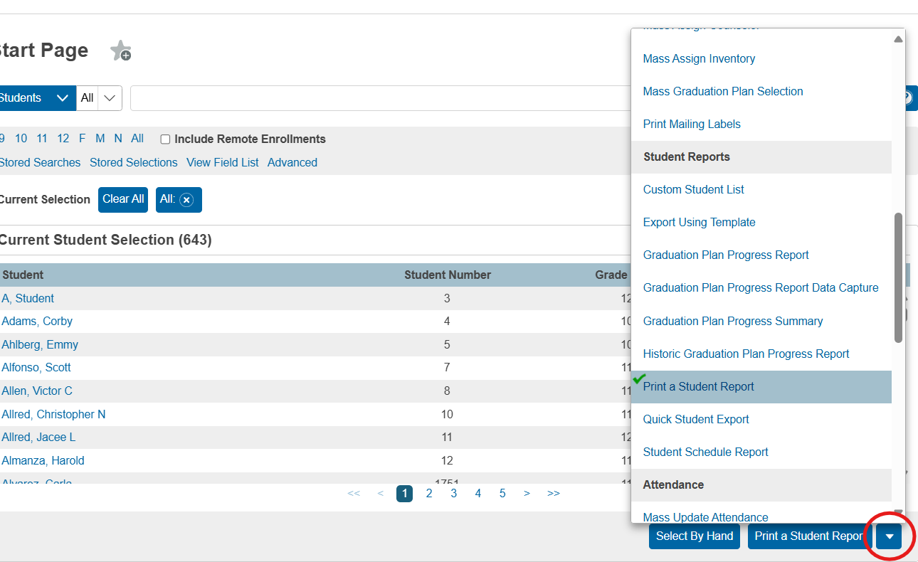 - Select “Print a Student Report"