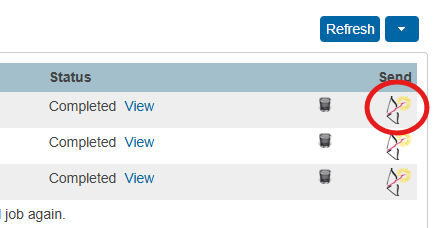 With BrightArrow report emailing turned on, all reports in the Report Queue (System) page will have a button in the “Send” column. However, only reports that have been set up properly can be emailed. If you want to email a report that has been properly set up for emailing here are the steps: