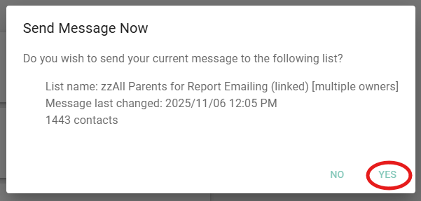 - A pop-up window will appear to confirm that you want to send your message. Click Yes.