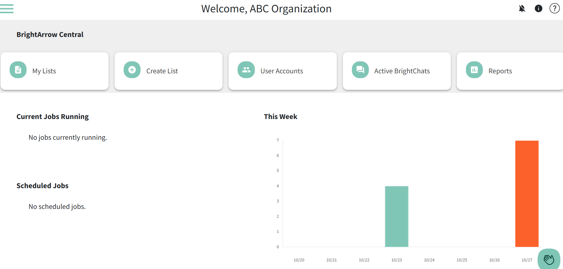 BrightView is our newest and most major redesign of the interface. This is the interface that most users see when they login to BrightArrow. The first change you will notice is that BrightView no longer defaults to the My Lists page, now it defaults to BrightArrow Central which is a brand-new dashboard. Colors have changed and all pages are getting a more modern feel. BrightView is more than just an updated look; it is a full upgrade of the user interface with more advanced functionality. Additional new features are being added regularly. For more information go to the Introducing BrightView article.