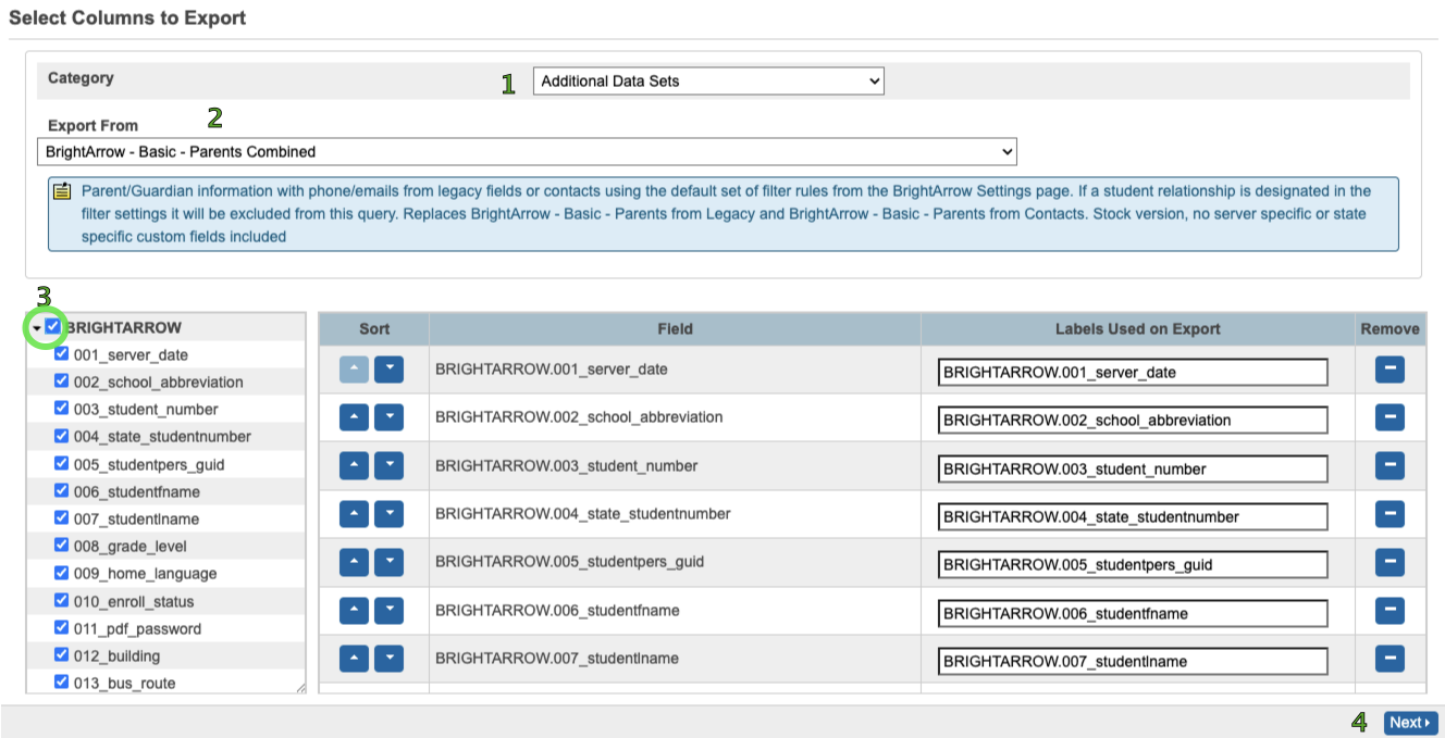 - Export From = BrightArrow - Basic - Parents Combined