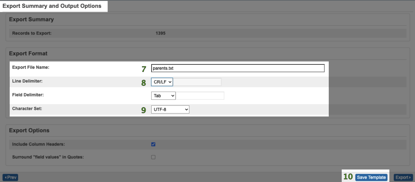 - Export File Name = parents.txt