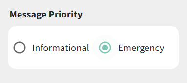 - Only Emergency Messages: messages will only send to the phone number or email address entered if the Message Priority is set to "emergency" in the message creation page