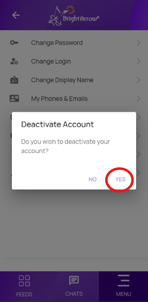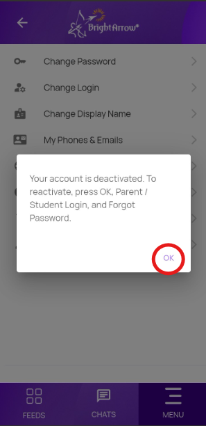 - Your account is now deactivated. Click OK in the final pop-up window.