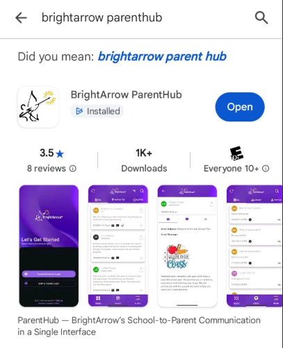 With your mobile device, go to the App Store or Play Store and search "BrightArrow ParentHub" to install the app on your device.