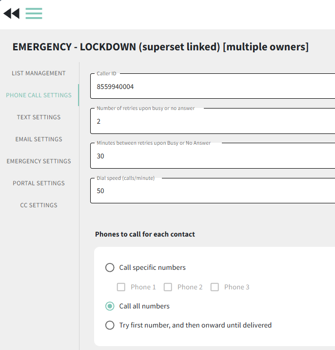- Review the "Phones to call for each contact" section to ensure your calls go out how you want them to.