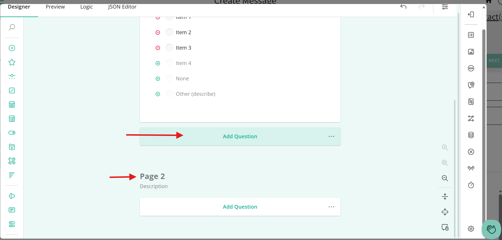 - Note that the form designer pre-populates the option for additional questions and pages to be added, but don't worry - if you add nothing there they will not populate to your final form that you send out.