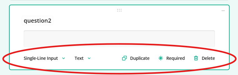 - Clicking "Add Question" will add a new question to your form. Using the options at the bottom of the question panel, ou can choose what type of question you want to use, format how answers are input, mark the question as "required," or even duplicate the question. Duplicating the question is especially helpful if you've added formatting using the settings from the right-side panel that you want to use in your next question too.