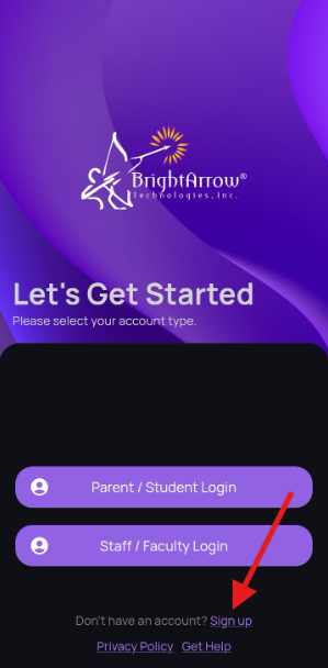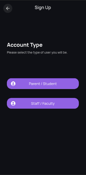 - Choose the account type that best applies to you, either Parent / Student or Staff / Faculty (staff members who are also parents should use Staff / Faculty)