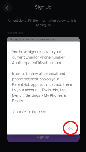 - Your account is now reactivated. Click OK in the pop-up window to proceed with viewing your messages. To make sure you're getting all messages in your account, navigate to Menu > Settings > My Phones & Emails to add your the contact information that your organization has on file for you. See here for help with adding additional phones and emails.