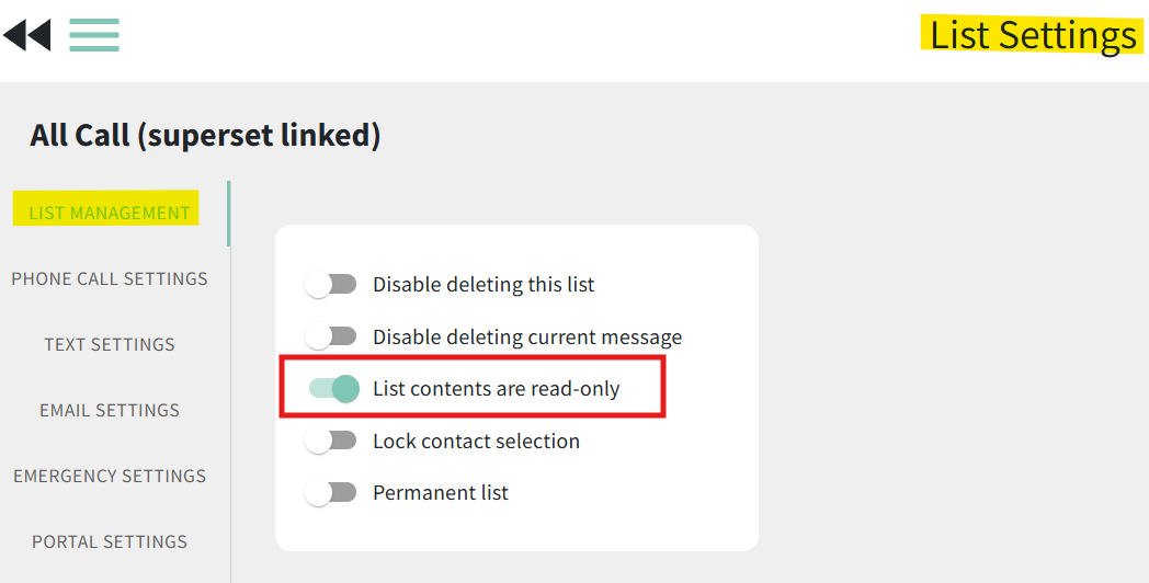 - Turn the "List Contents are Read-Only" toggle ON to protect the list so that users will not make unintentional changes to the contact information that is stored in the list.