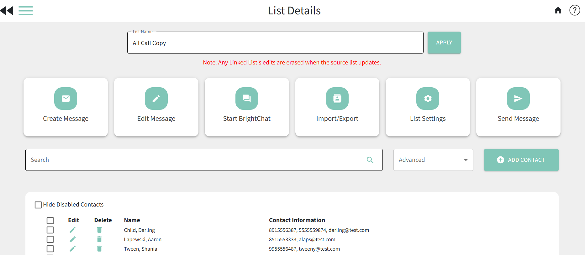 - From the My Lists page, click on the name of the list to bring you to the List Details page. Any contacts in the List Details page who are enabled will have a checkbox next to their name.