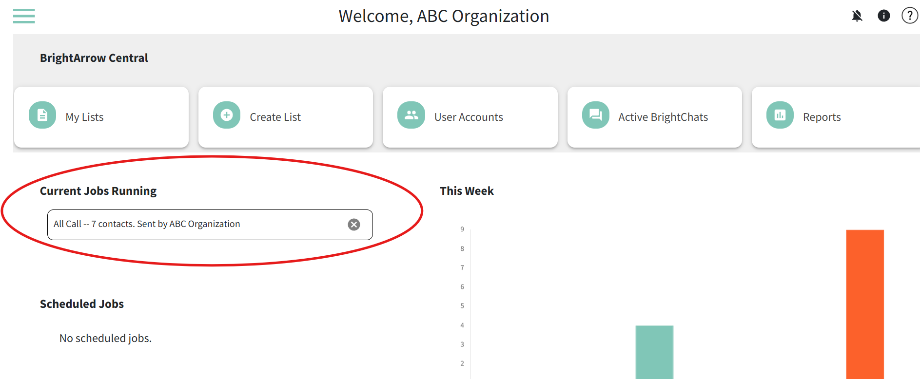 You can see if a message is still sending from the My Lists page or the BrightArrow Central home page: