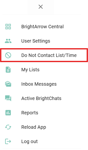 - From the BrightArrow Central home screen, click the hamburger menu (3 horizontal lines) in the upper left.