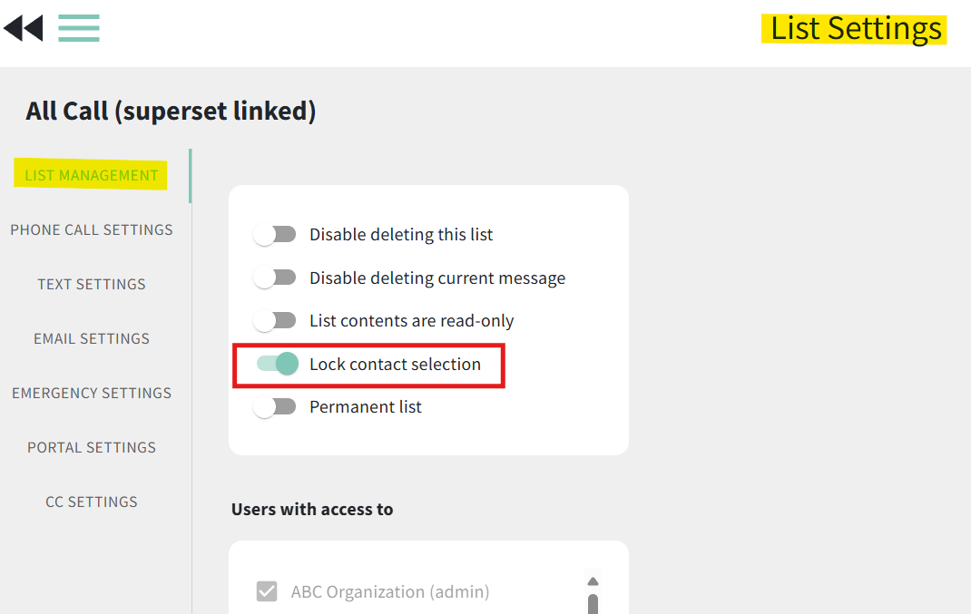 - Users will now need to go into the list settings to turn the toggle OFF in order to change the contact selection