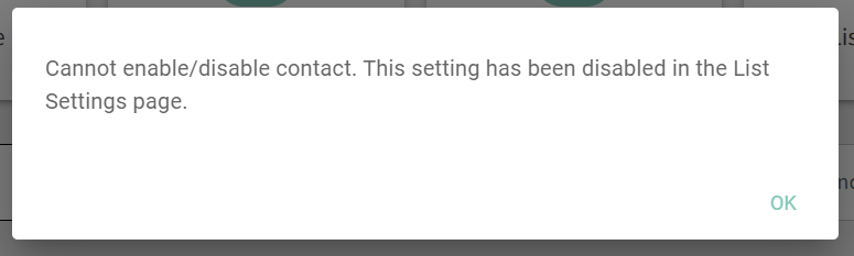 - With the Lock Contact Selection toggle turned ON, anyone who tries to change the contact selection from the List Details page will receive an error
