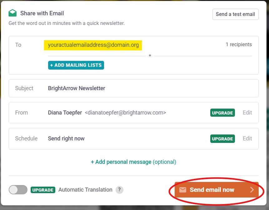 - Click the "Share with Email" button and send the newsletter to yourself.