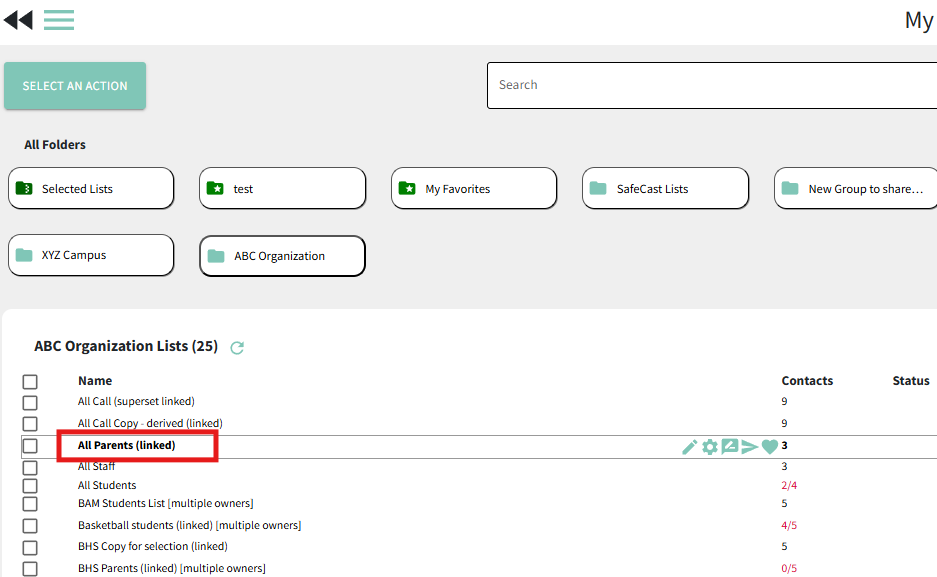 - In BrightArrow, navigate to your My Lists page and click on the name of the list you want to send the newsletter to.
