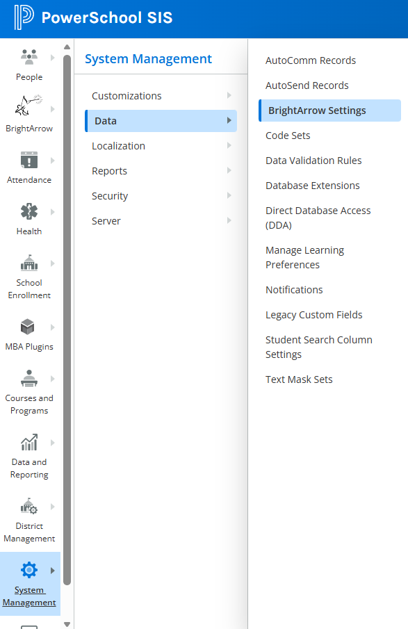 - Navigate to System Management > Data > BrightArrow Settings
