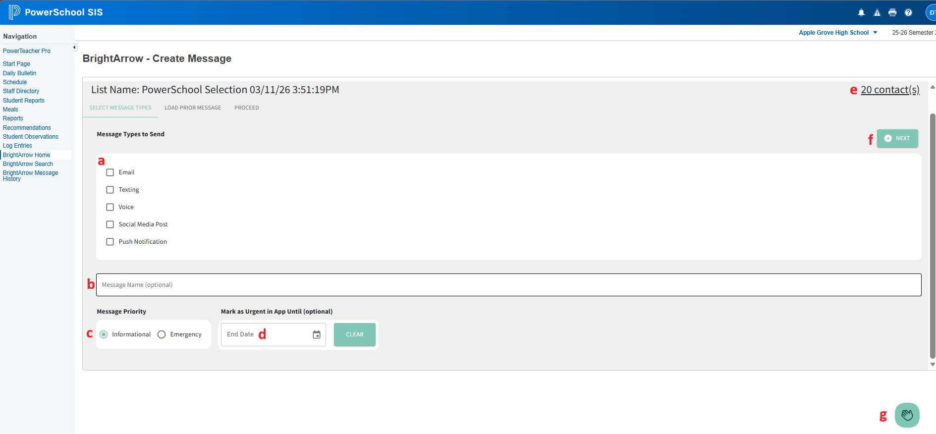 With the BrightArrow-PowerTeacher integration, teachers have a variety of options for sending messages to their students and students' families. This article will focus on the specific functions teachers can use to send BrightArrow messages through PowerTeacher.