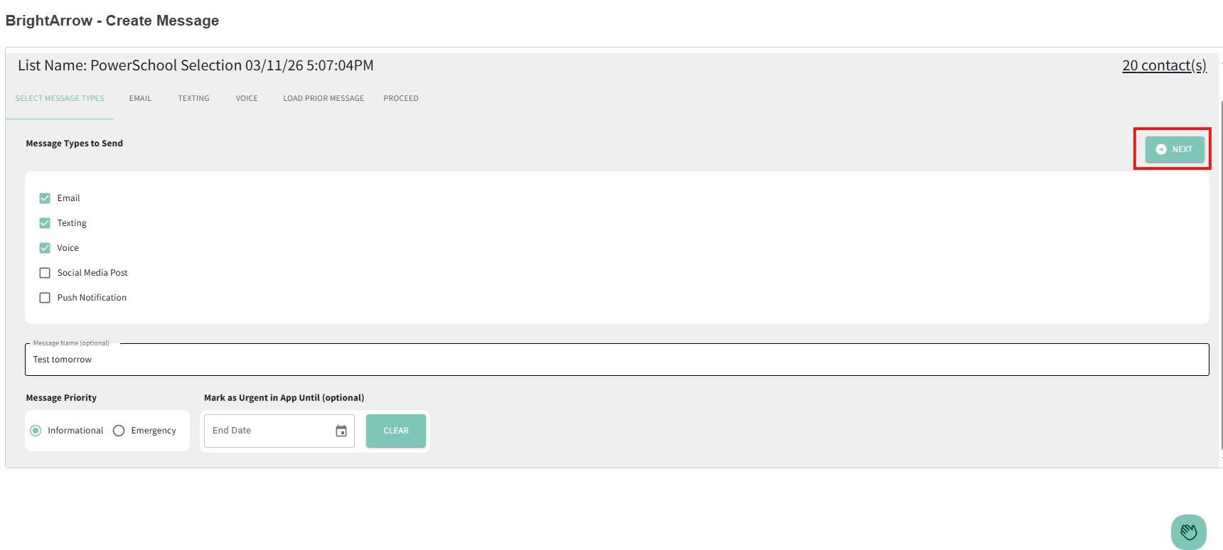 - Message Priority - the message priority should be "Informational" unless the message is a true emergency. See here for more information about sending emergency messages.