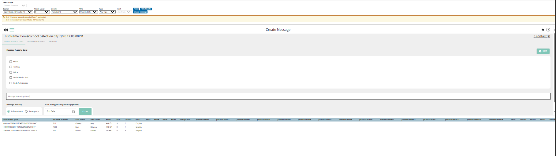 - Notice that the number of contacts is based on the number of students. Example: You are messaging all the parents for 3 students. The number of contacts shown will be 3 because it pertains to the families of 3 students, not the number of parent contacts.
