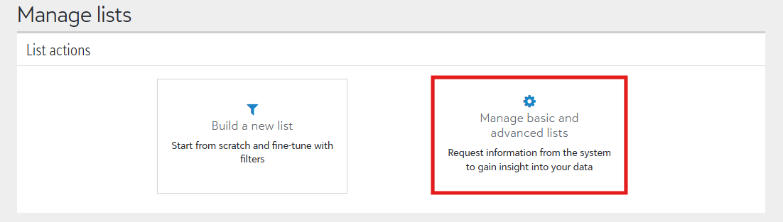 - Click Manage basic and advanced lists