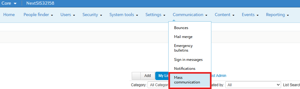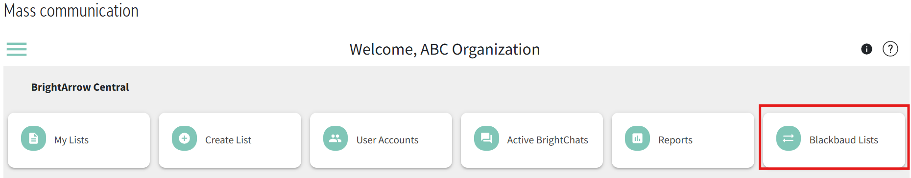 - Login to BrightArrow target or go to Communication > Mass Communication in Blackbaud