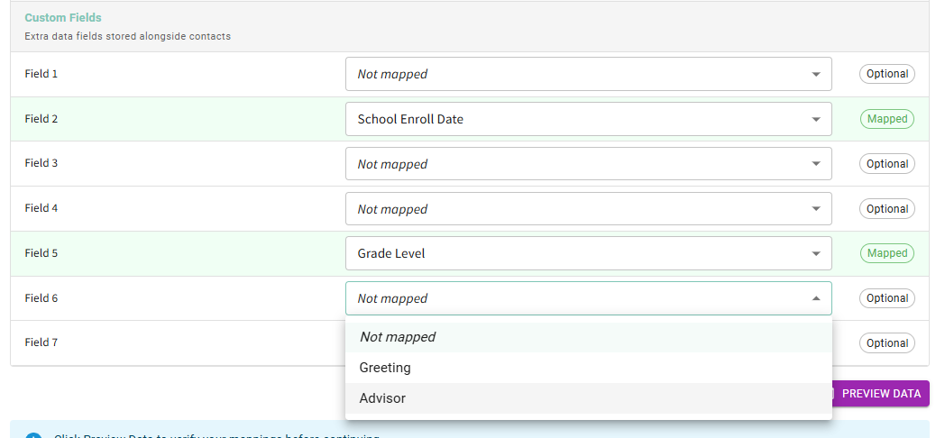 - Once your custom fields are selected, click Preview Data