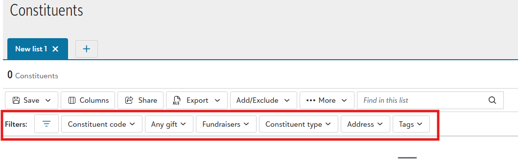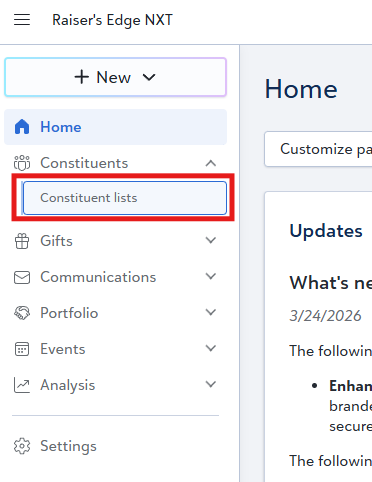 - In Raiser's Edge NXT, navigate to Constituents > Constituent Lists