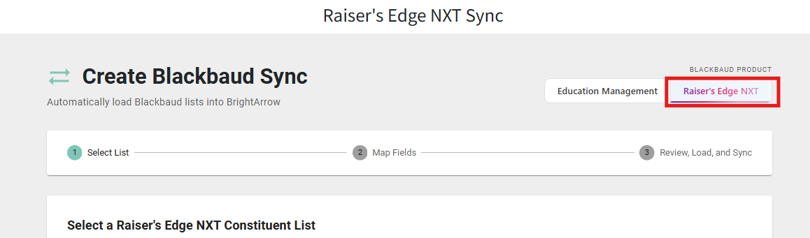 - If you use Raiser's Edge NXT and Blackbaud EMS, make sure you have the "Raiser's Edge NXT" tab selected to see your Constituent lists.