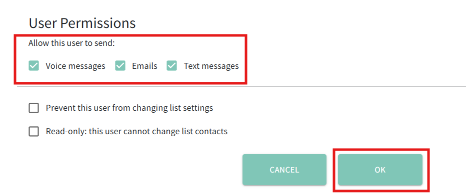 - When the user goes to create a new message, the message types you selected under User Permissions will now be available to them
