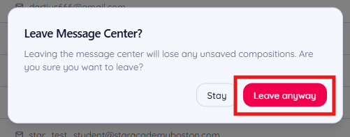 After clicking the List Settings button, you may see a pop-up window asking if you want to leave the Message Center. Click "Leave Anyway" to access the List Settings.