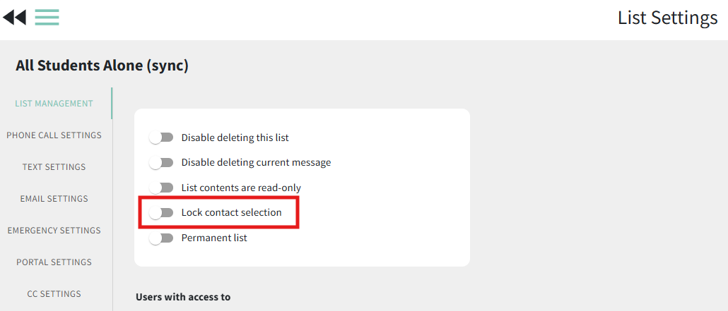 On the List Settings page, toggle OFF the "Lock Contact Selection" toggle, then click the double-back arrows in the upper-left to go back to the previous page.