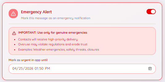 - If your message is an emergency, turn on the Emergency Alert toggle.