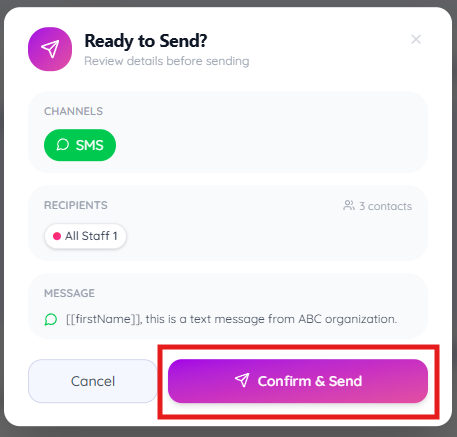 - After clicking "Send Message" you will see a pop-up window. Confirm the details of your message and click "Confirm & Send" if all looks good.